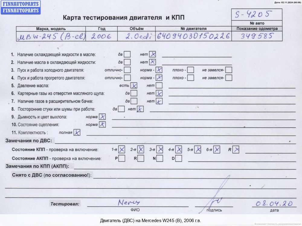 2006; Дизель; 2.0; OM 640.940, CDTI; Минивэн; серебристый; 2006, 2л, Дизель, CDTI, OM 640.940, 64094030177570, A6400101605, Минивэн, серебристый, Фото не актуально, с запчасти отделены: Кронштейн двигателя, Генератор, 64094030177570 | - | К | КК | ТУ, без права на возврат. прокручивается, состояние ГРМ - нормально, поддон - нормально, клапанная крышка - нормально, эмульсия - нет,