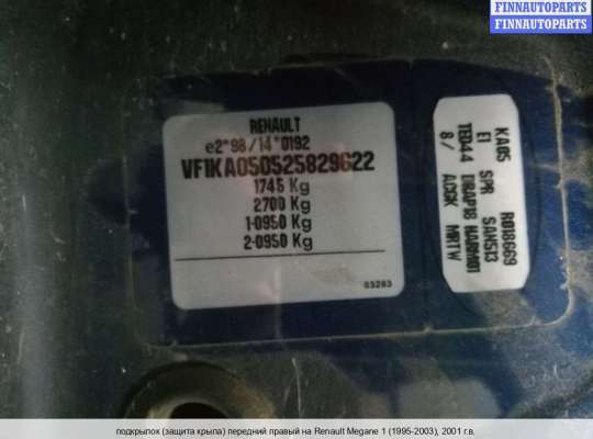 | Renault Scenic III | 2011 | если есть возможность, - то только переднюю часть правого переднего подкрылка, т.к он из двух половинок. |